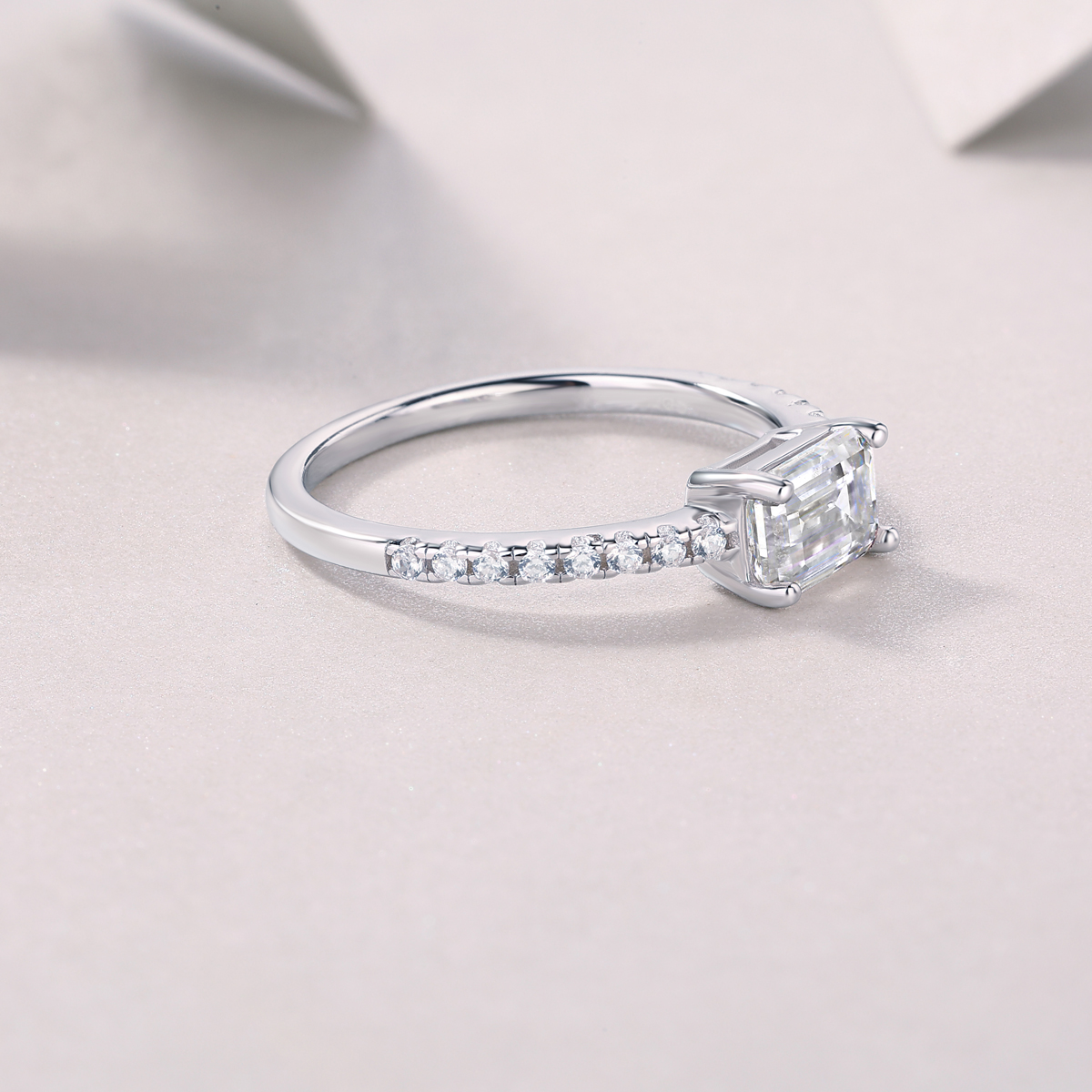This wedding ring set features a high-quality moissanite with an octagonal shape and size of 5*7. The rings come in sizes 5 to 9 and are made with top-grade S925 silver and platinum plating. In addition, the combined weight of the rings is 2.2 grams. The set comes packaged in a gift box with a GRA certificate for authenticity.